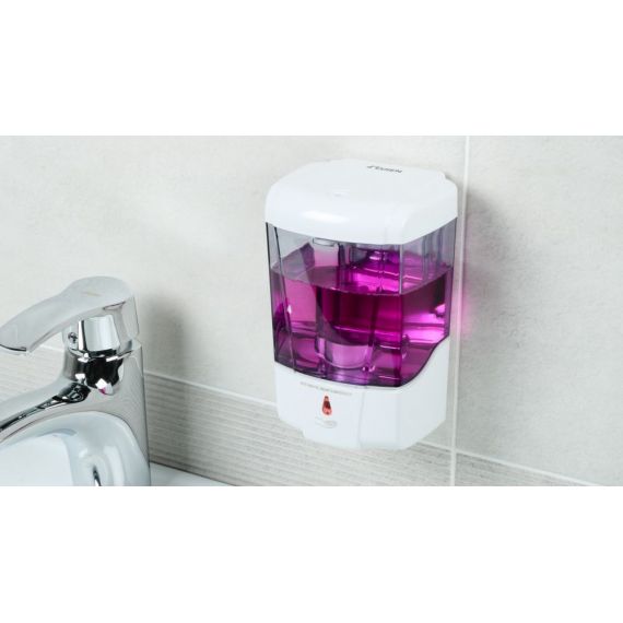 Бесконтактный (инфракрасный) дозатор емкостью 600 мл., работает от 4 пальчиков батареек и выдает порции по 1 мл. Красная сигнальная лампа дает подтверждение о срабатывании сенсора. Для удобства эксплуатации оснащен выключателем и замком на верхней крышке.