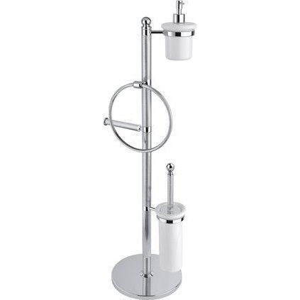 Стойка с держателем для туалетной бумаги, дозатором для жидкого мыла, кольцом для полотенец и ёршиком для унитаза Cezares Olimp, материал латунь, цвет хром.