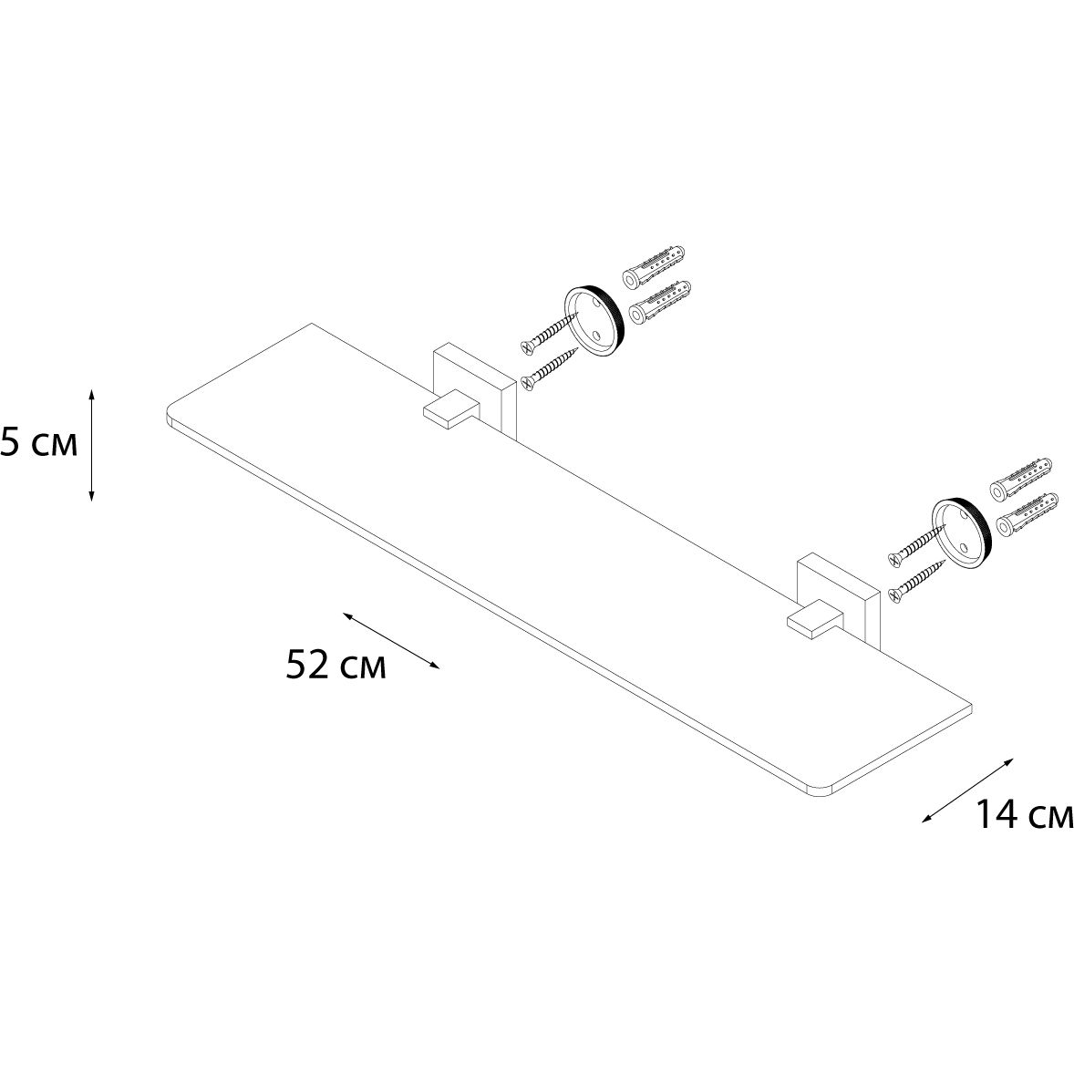 Стеклянная полка Fixsen Metra, стекло, с настенным держателем, материал латунь, цвет хром.