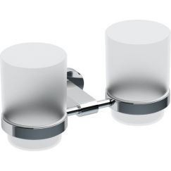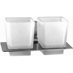 Двойной cтакан для зубных щеток Haiba HB8608 с настенным держателем, материал металл/стекло, цвет хром.