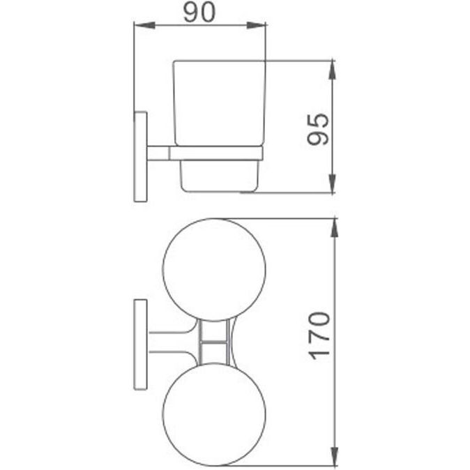 Двойной cтакан для зубных щеток Haiba HB8608 с настенным держателем, материал металл/стекло, цвет хром.