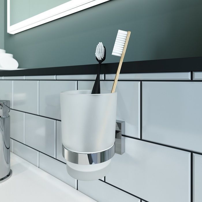 Стакан для зубных щеток Iddis Edifice EDIMBG1i45 с настенным держателем, материал латунь/стекло, цвет хром глянцевый.