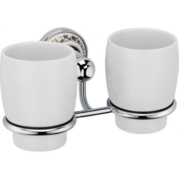 Стакан двойной Fixsen Bogema, керамика, с настенным держателем, материал латунь, цвет хром.