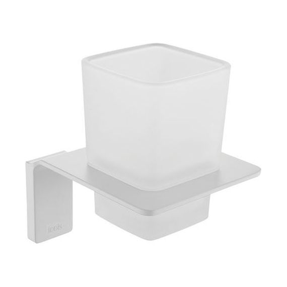 Стакан для зубных щеток Iddis Slide SLIWTG1i45 с настенным держателем, материал латунь/стекло, цвет белый.