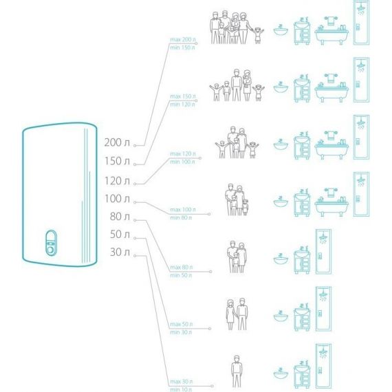 Расчетное количество человек для принятия душа (при среднем расходе): 1