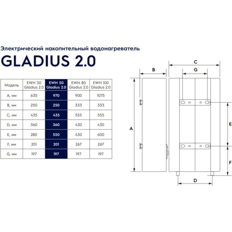 GLADIUS 2.0 – обновленная серия плоской эмали дополнена новыми режимами обработки воды, регулировкой мощности и универсальным монтажом. Долговечность и высокое качество прибора подтверждает рекордная гарантия на внутренний бак — 7 лет.