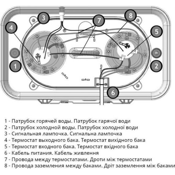 Внешний механический регулятор температуры расположен на нижней части бака.