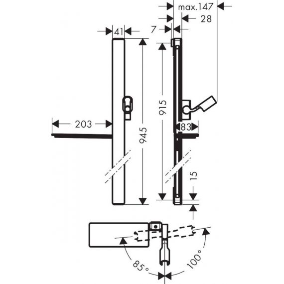 держатель ручного душа регулируется в пределах 90°, поворачивается вправо и влево, перемещается вверх и вниз