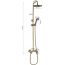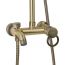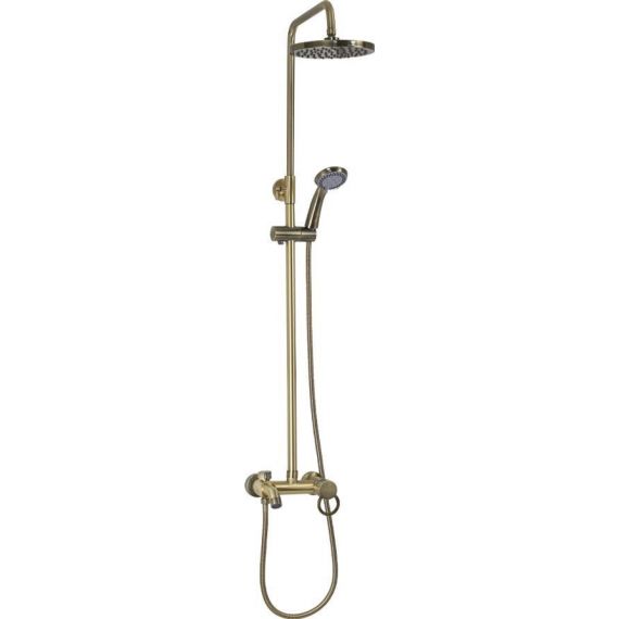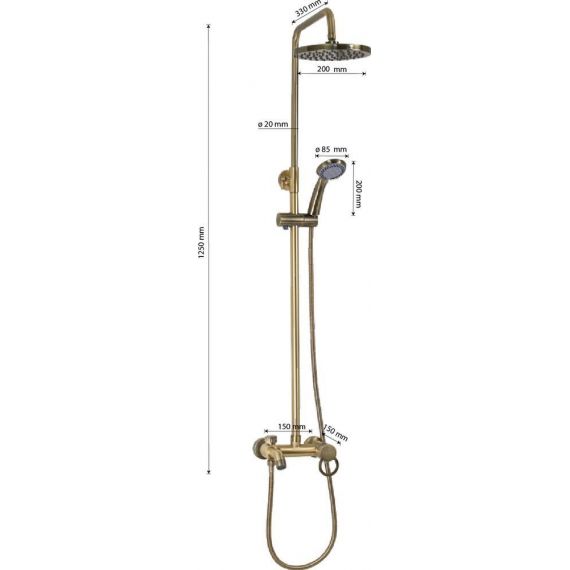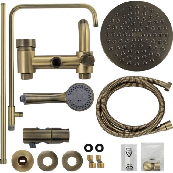 Смеситель + стойка душевая "тропический душ" с двумя лейками в ванную, цвет под бронзу. В дизайне душевой стойки гармонично соединились строгие линии и мягкие переходы. Она отлично впишется в интерьер ванной комнаты в минималистическом стиле. Глянцевое покрытие под состаренную бронзу не стирается и сохраняет первозданный внешний вид в течение всего периода эксплуатации. Длительную работу без протечек обеспечивает смеситель с керамическим картриджем. Предусмотрен излив для наполнения ванны. Угол наклона верхнего душа можно регулировать в соответствии с потребностями каждого пользователя. Ручная лейка оснащена металлическим шлангом, который не перекручивается во время водных процедур. Смеситель шаровый с коротким изливом, душевым шлангом и лейкой и дивертор переключения в трёх положениях. Картридж d = 35 мм, ручка с кольцом, аэратор для экономии воды, чашки и эксцентрики. Душевая стойка с присоединением к корпусу смесителя и дополнительным креплением к стене и большой круглой лейкой с эффектом тропического душа. Габаритные размеры: ширина смесителя 150 мм, высота 100 мм, длина излива корпуса 150 мм, высота стойки 1250 мм, длина излива стойки 330 мм, круглая душевая лейка d = 200 мм, круглая лейка тропический душ d = 85 мм, шланг 150 см, вес - 3,500 кг, объём - 0,02787 м3. В комплекте корпус с изливом, чашки, эксцентрики, прокладки, стойка, дивертор, шланг, две лейки, крепления.