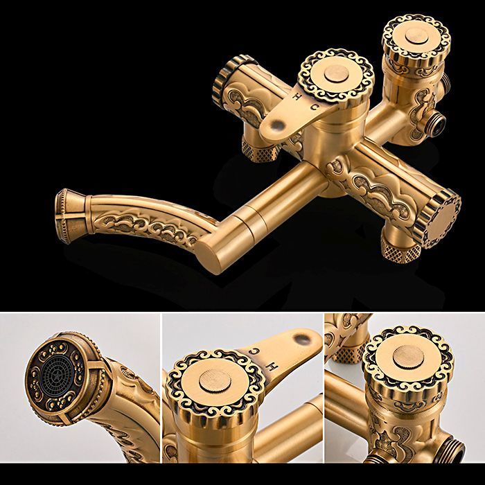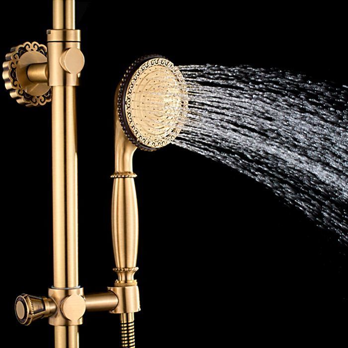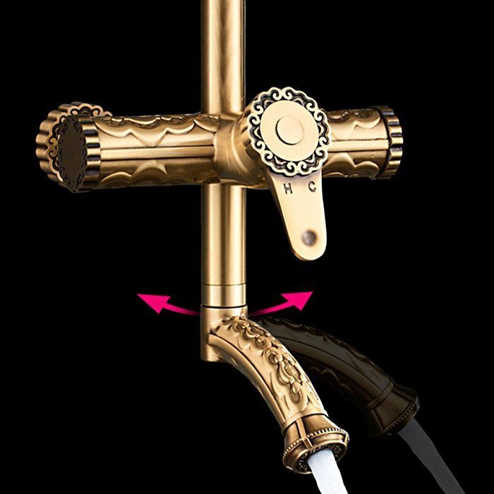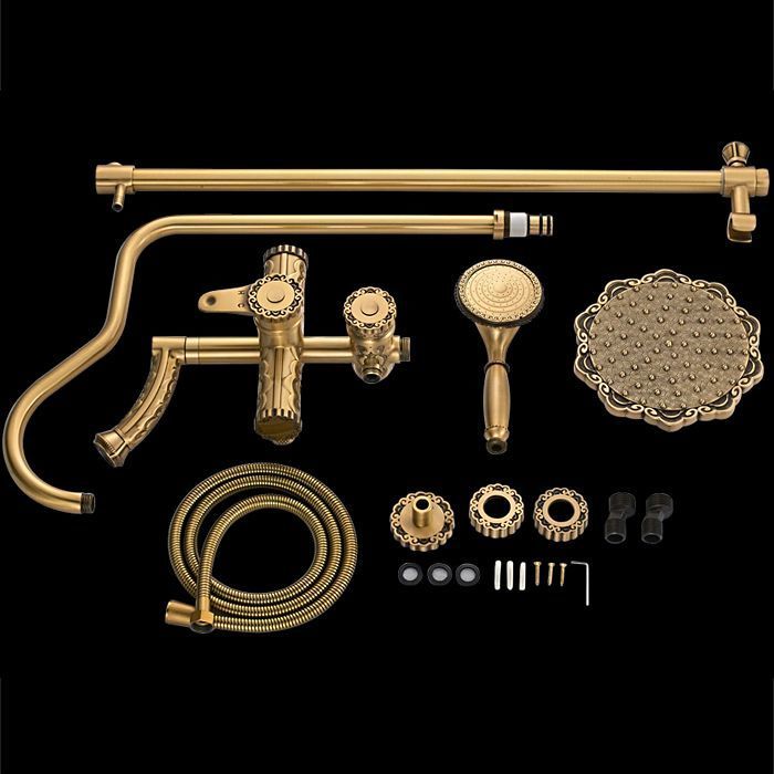 Душевая система для ванны Gerhans K19018, количество режимов душевой лейки - 1, длина душевого шланга - 150 см, поворотный излив, материал - латунь, цвет - античная бронза.