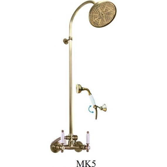Душевые системы из серии Morava Retro производится в цвете хром, бронза и золото, а также с различными типами ручек (на фото MK1):