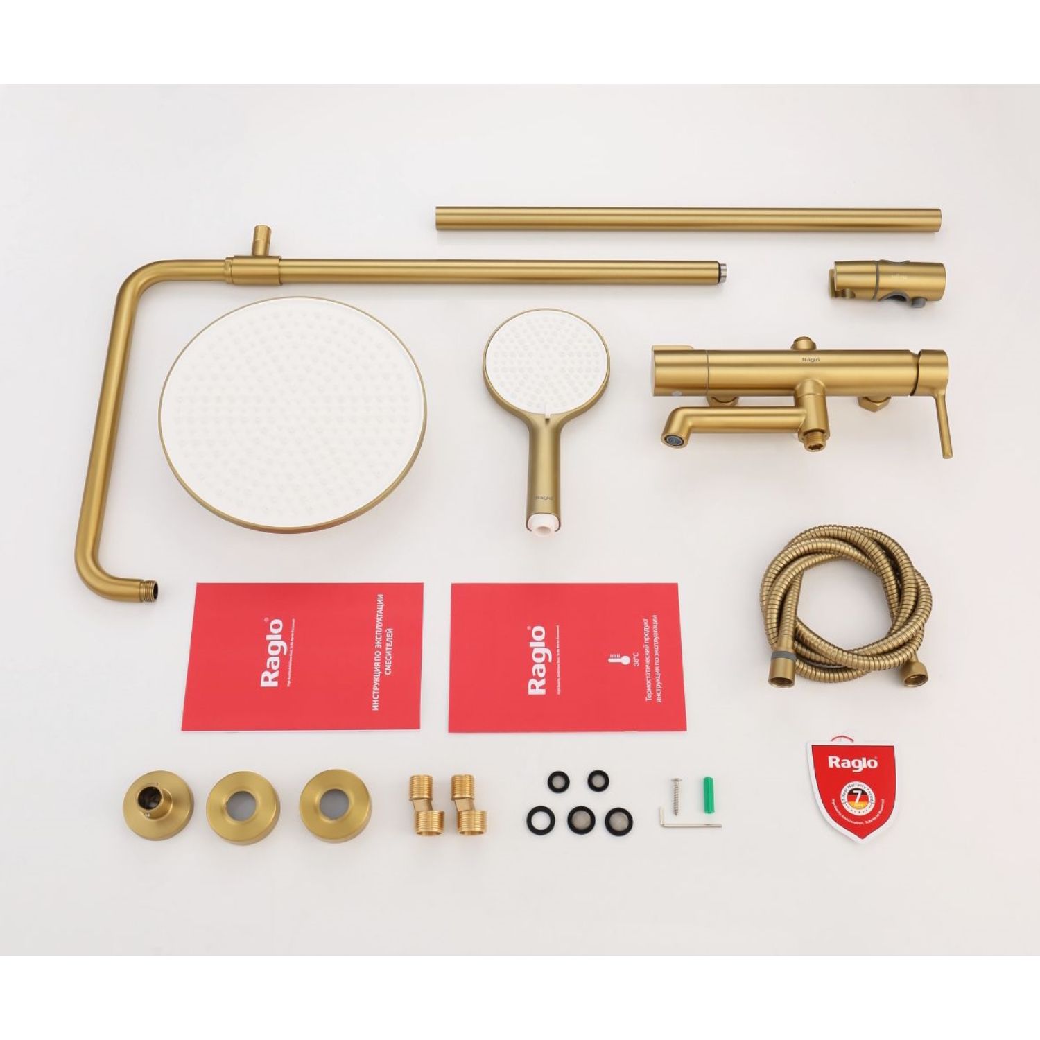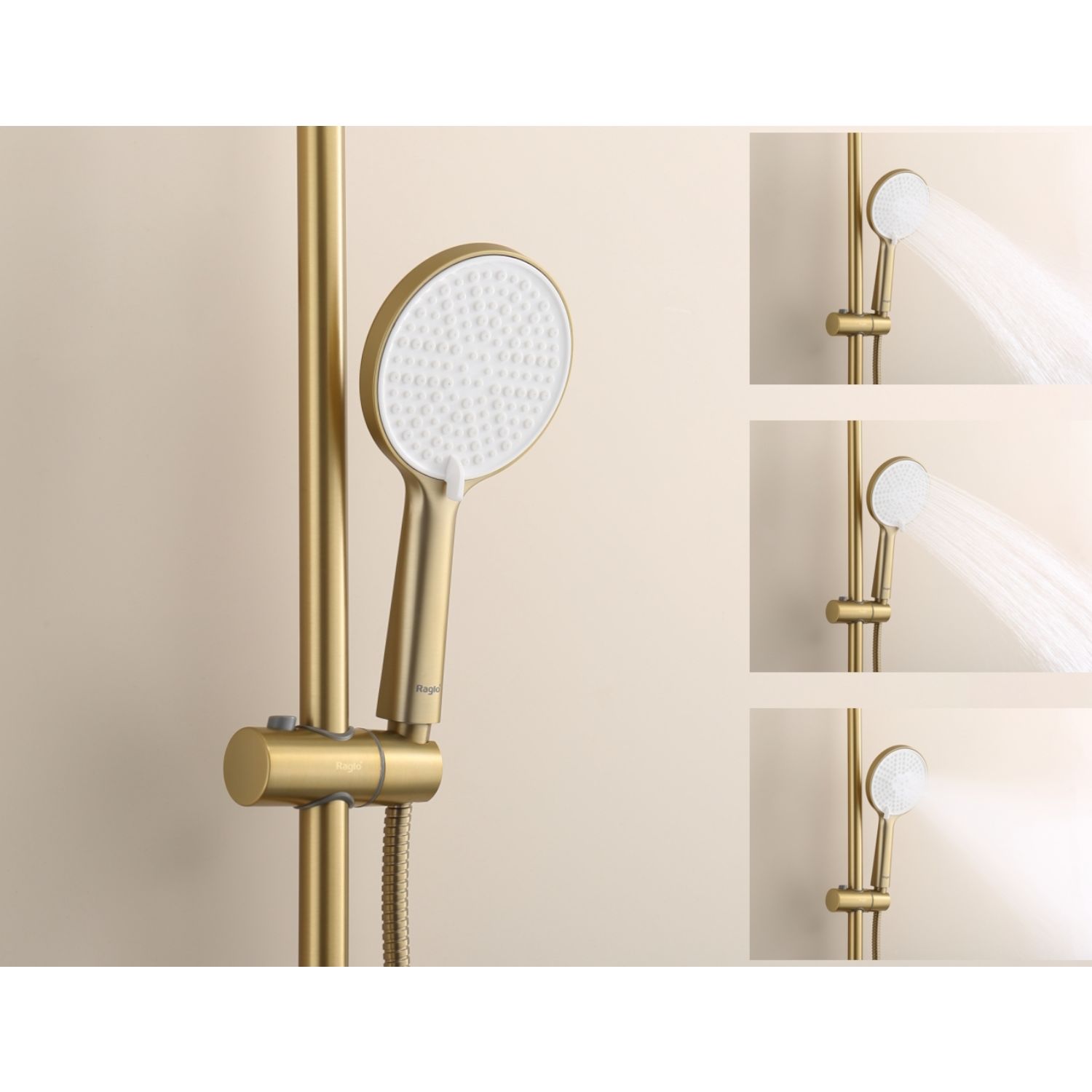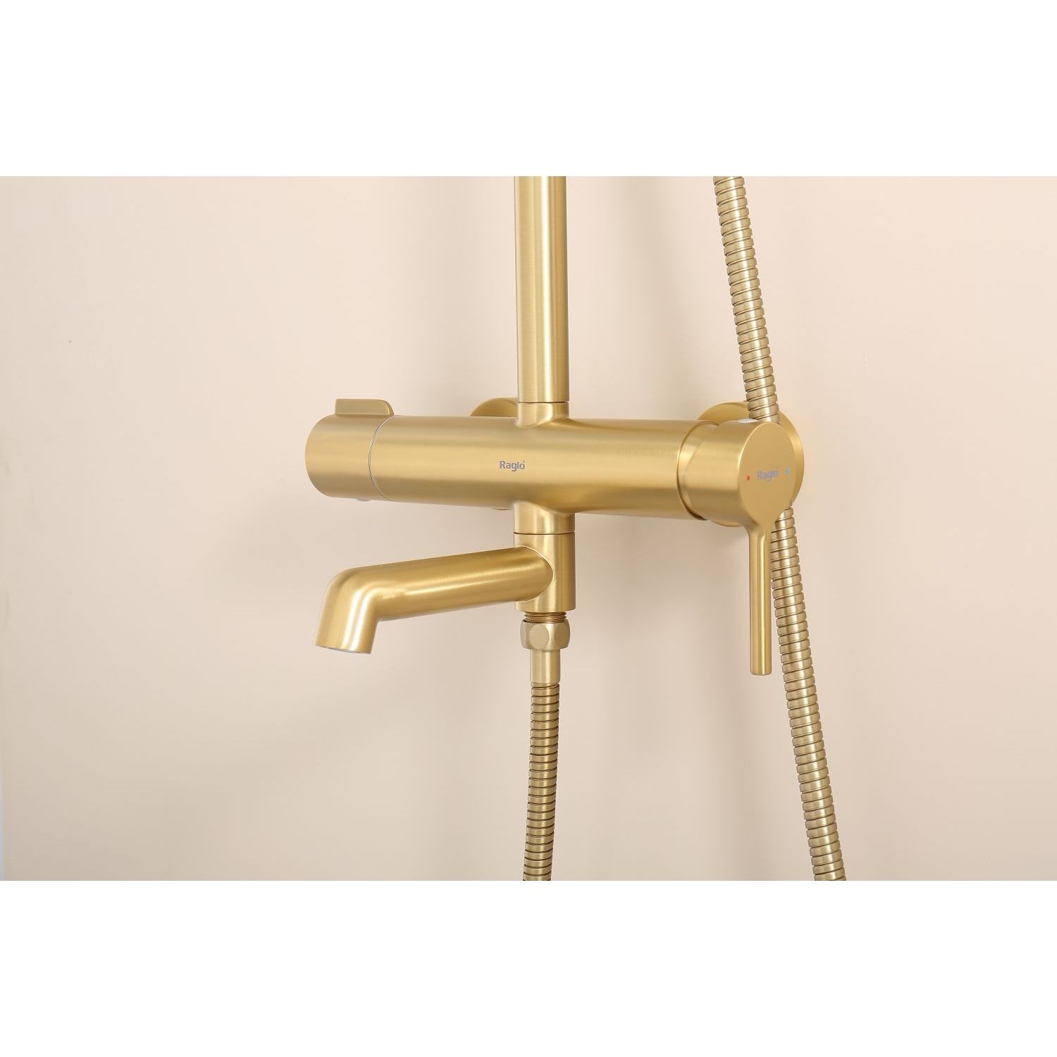 Душевая система с выдвижным изливом Raglo R20.24.03, материал латунь, цвет сатин золотой.