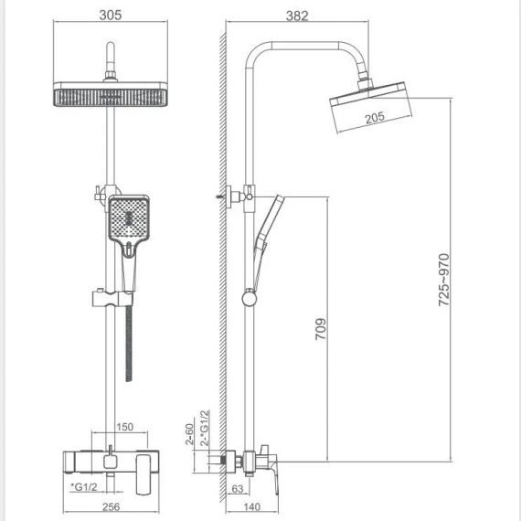 Душевая стойка Haiba HB24512-7, материал латунь, цвет чёрный.
