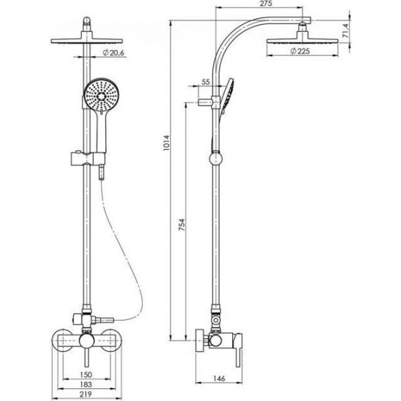 Душевая стойка Mixxus Sas SS0041, материал - нержавеющая сталь, цвет - нержавеющая сталь.