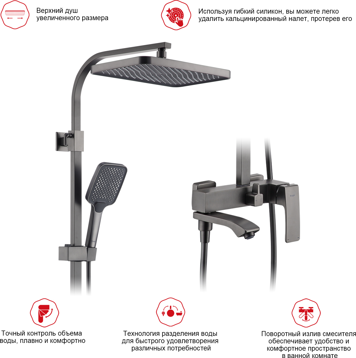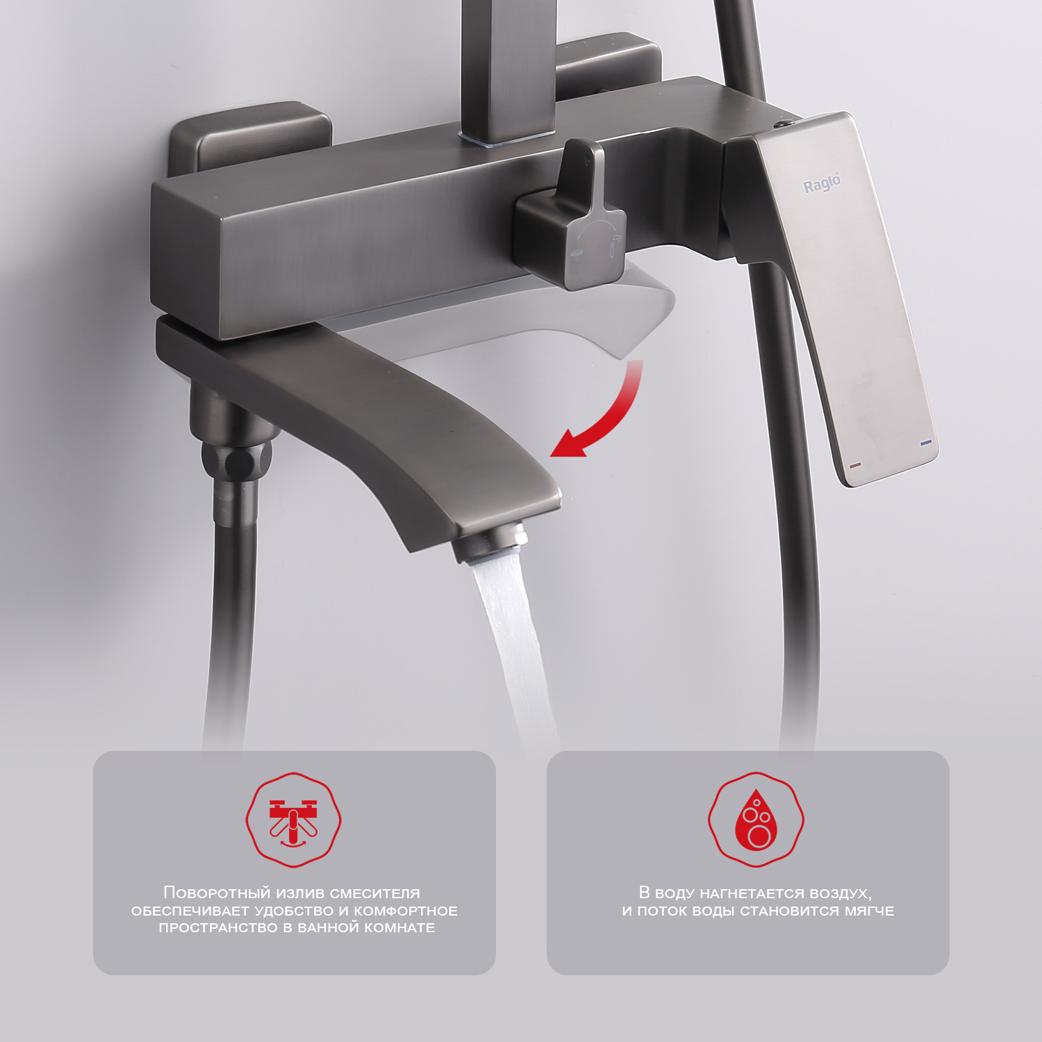 Душевая система с выдвижным изливом Raglo R01.24.09, материал латунь, цвет графит.