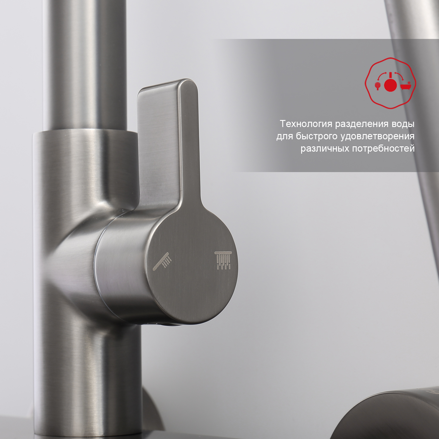 Душевая система с выдвижным изливом Raglo R50.24.09, материал латунь, цвет графит.