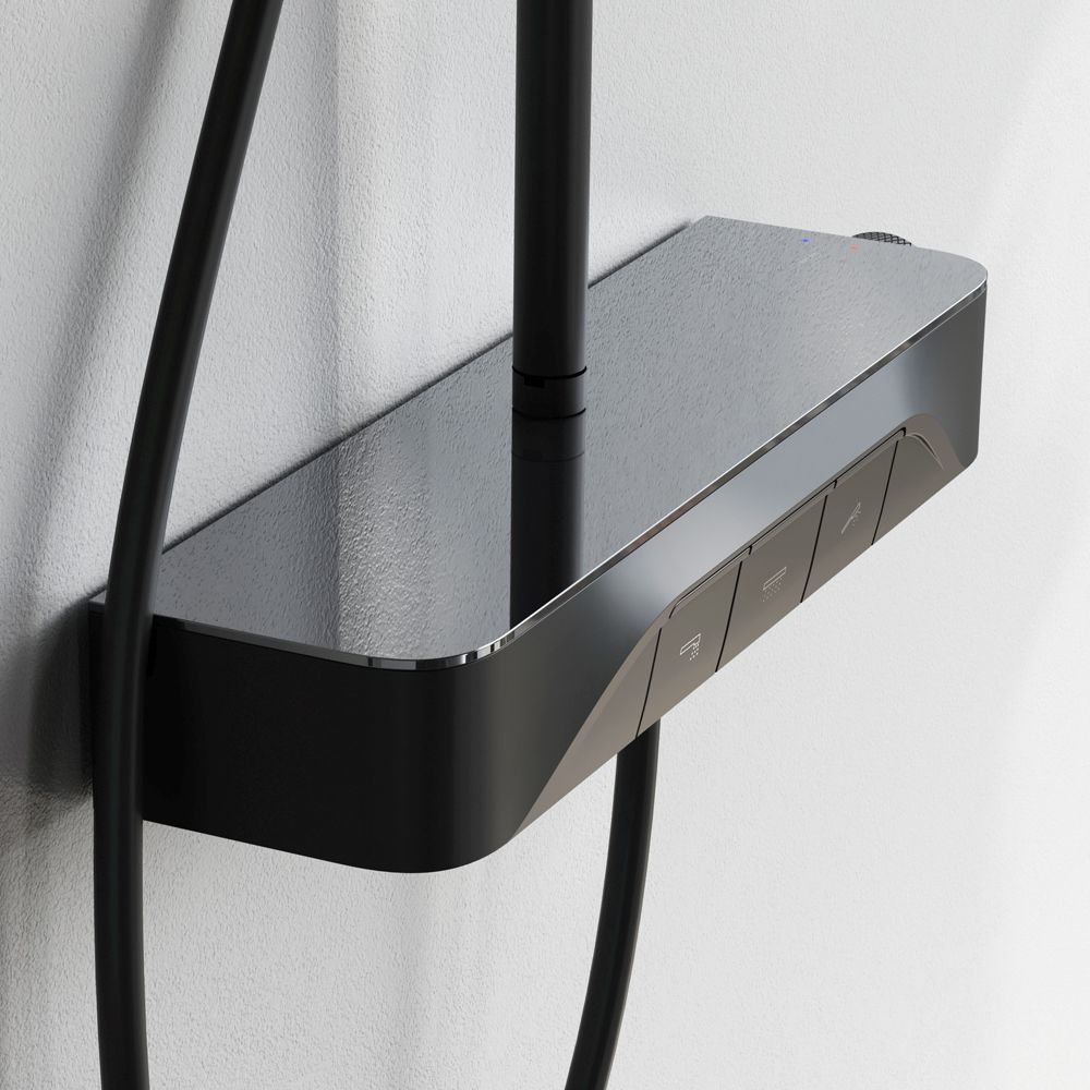 Интуитивно понятное управление: всего одна удобная ручка для настройки температуры и потока воды. Ручка дополнена инновационным антискользящим покрытием, которое позволяет комфортно управлять душевой системой даже с мыльными руками. Переключение потоков воды осуществляется нажатием клавиши.