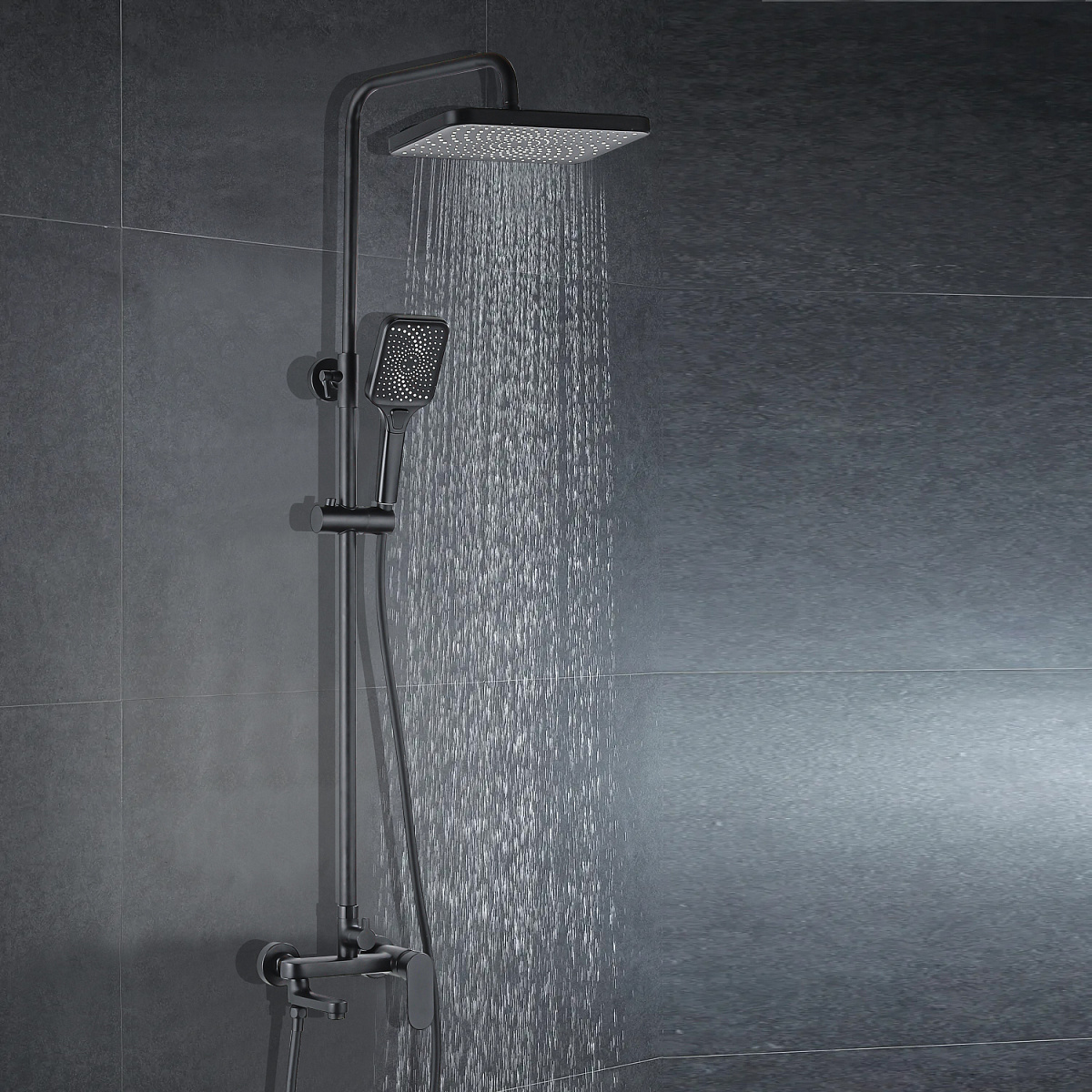 Душевая колонна Azario Arizona AZ-20BS со смесителем для ванны, с поворотным изливом, черный