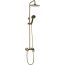 Смеситель + стойка душевая "тропический душ" с двумя лейками в ванную, цвет под золото. В дизайне душевой стойки гармонично соединились строгие линии и мягкие переходы. Она отлично впишется в интерьер ванной комнаты в минималистическом стиле. Глянцевое покрытие под состаренную бронзу не стирается и сохраняет первозданный внешний вид в течение всего периода эксплуатации. Длительную работу без протечек обеспечивает смеситель с керамическим картриджем. Предусмотрен излив для наполнения ванны. Угол наклона верхнего душа можно регулировать в соответствии с потребностями каждого пользователя. Ручная лейка оснащена металлическим шлангом, который не перекручивается во время водных процедур. Смеситель шаровый с коротким изливом, душевым шлангом и лейкой и дивертор переключения в трёх положениях. Картридж d = 35 мм, ручка с кольцом, аэратор для экономии воды, чашки и эксцентрики. Душевая стойка с присоединением к корпусу смесителя и дополнительным креплением к стене и большой круглой лейкой с эффектом тропического душа. Габаритные размеры: ширина смесителя 150 мм, высота 100 мм, длина излива корпуса 170 мм, высота стойки 800-1100 мм, длина излива стойки 330 мм, круглая душевая лейка d = 220 мм, круглая лейка тропический душ d = 105 мм, шланг 150 см. Вес - 3,660 кг, объём - 0,03 м3. В комплекте корпус с изливом, чашки, эксцентрики, прокладки, стойка, дивертор, шланг, две лейки, крепления.