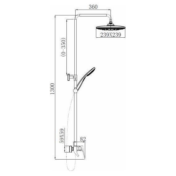 квадратная лейка верхнего душа 239х239 мм, на шаровом шарнире, угол наклона 15 градусов