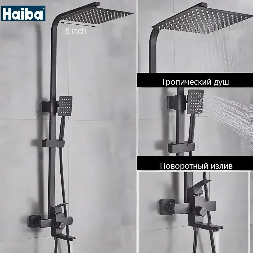 Душевая стойка Haiba HB23803-7, чёрный матовый