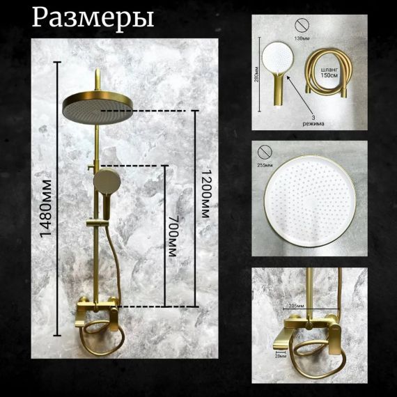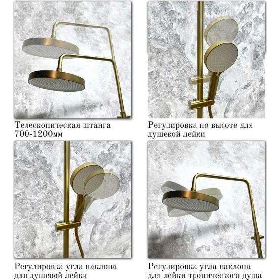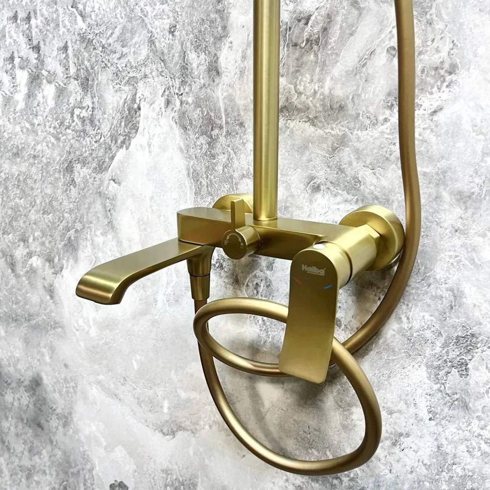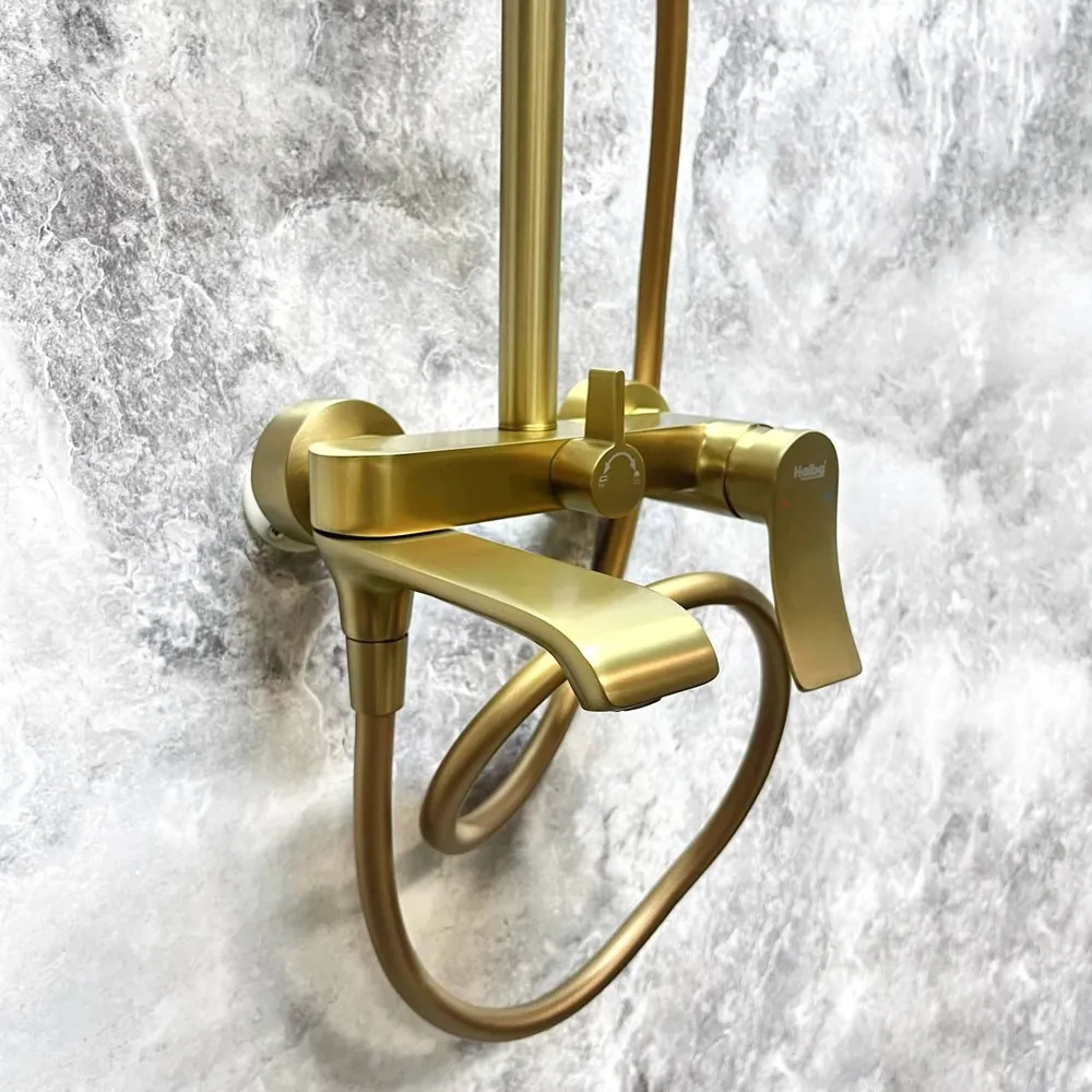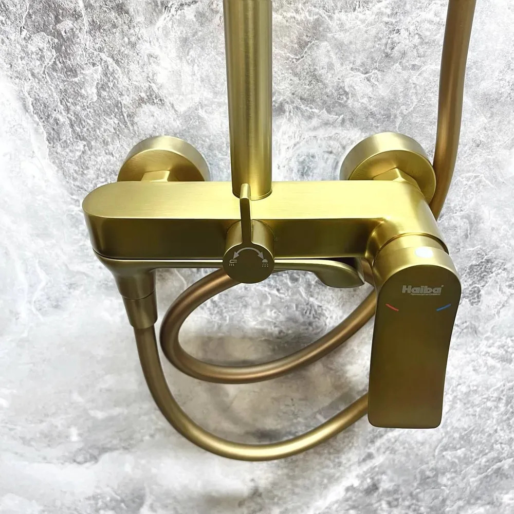 Душевая стойка с выдвижным изливом Haiba HB24553-5, материал латунь, цвет золото.