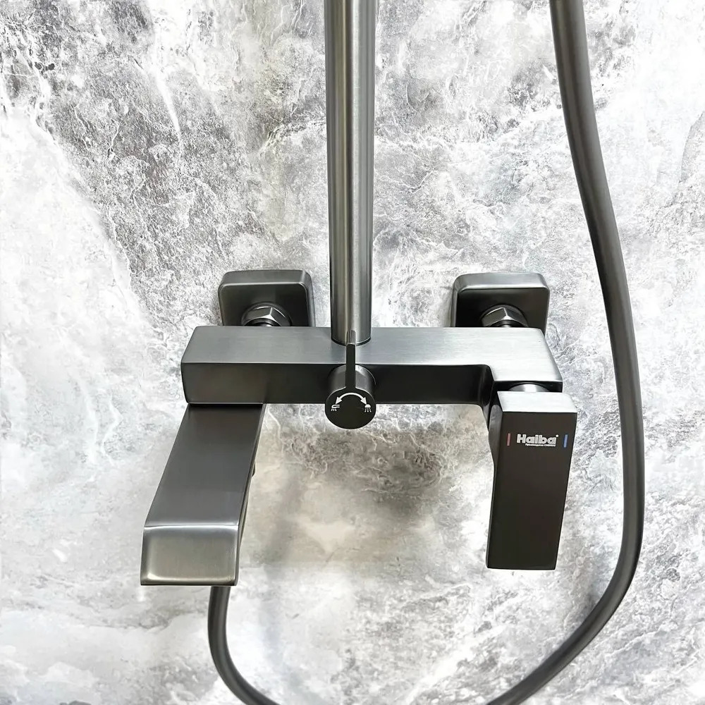 Душевая стойка с выдвижным изливом Haiba HB24575-3, материал латунь, цвет графит.