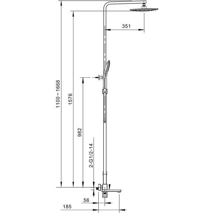 Душевая стойка с выдвижным изливом Gappo G17-3 G2417-3, материал латунь, цвет золото сатин.