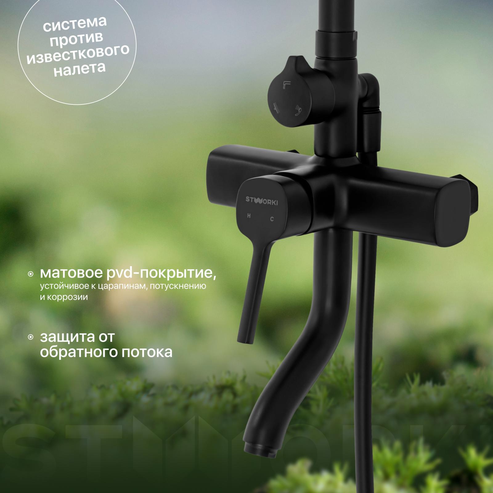 Душевая стойка Stworki Мосс FT13196OBD, материал нержавеющая сталь/латунь, цвет чёрный.