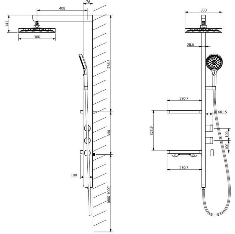 Душевая стойка Vincea Inspire VSFS-3I11MB, черный