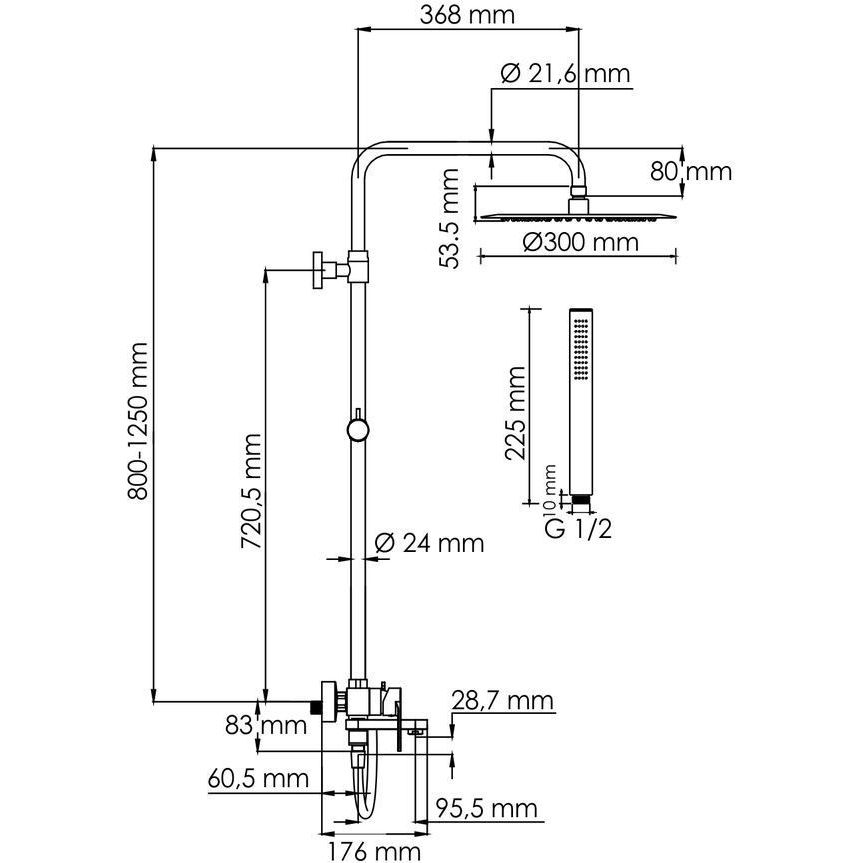 Стойка для душа, Ø 24 мм регулируемая по высоте