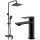 Душевой комплект Haiba: Душевая стойка HB24639-7 + смеситель для раковины HB10639-7, цвет чёрный матовый