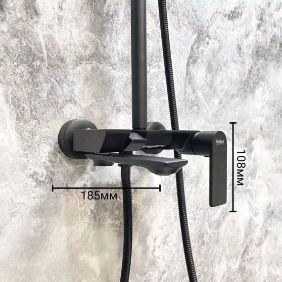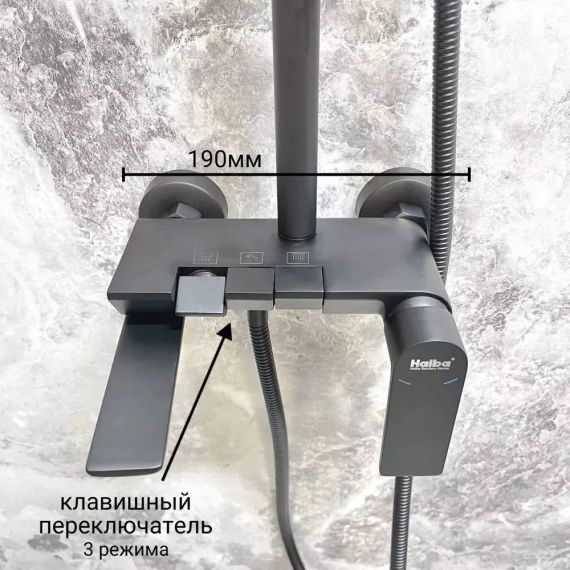 Душевой комплект Haiba: Душевая стойка HB24639-7 + смеситель для раковины HB10639-7, материал латунь, цвет чёрный матовый.