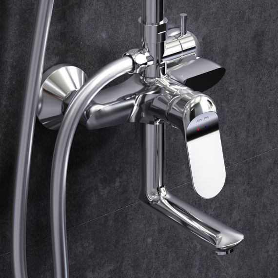 Тотальный дизайн в действии: все детали душевой системы – от пропорций ручного и верхнего душей до рисунка расположения форсунок на лейках – подчинены единой дизайн-концепции коллекции Sunny. Интенсивный напор даже при низком давлении в системе: инновационная функция Air In увеличивает напор вдвое при этом сокращая расход воды на 30%. Результат – экономия средств забота об экологии а главное – непередаваемое удовольствие от принятия душа. Диаметр душевых леек (верхний душ 220 мм и ручной душ 110 мм) позволит ощутить преимущества тропического душа даже в стандартной ванной тогда как увеличенная длина шланга 1750 мм обеспечит свободу движений во время принятия душа. Продуманные детали для удобства использования: телескопическая поворотная штанга регулируется по высоте в диапазоне от 1030 до 1460 мм обеспечивая комфорт для людей любого роста.