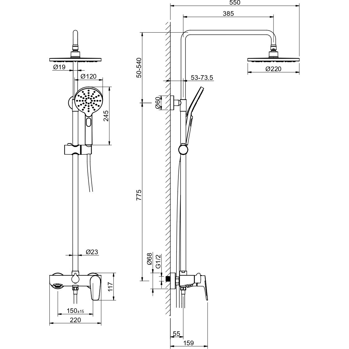 Душевая стойка Aquatek Бетта AQ2140CR, материал латунь, цвет хром.