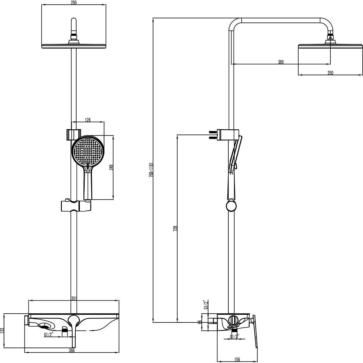 Душевая стойка Azario Ginkgo AZ-VPW238V95-1DJ1K22-ZH3A55