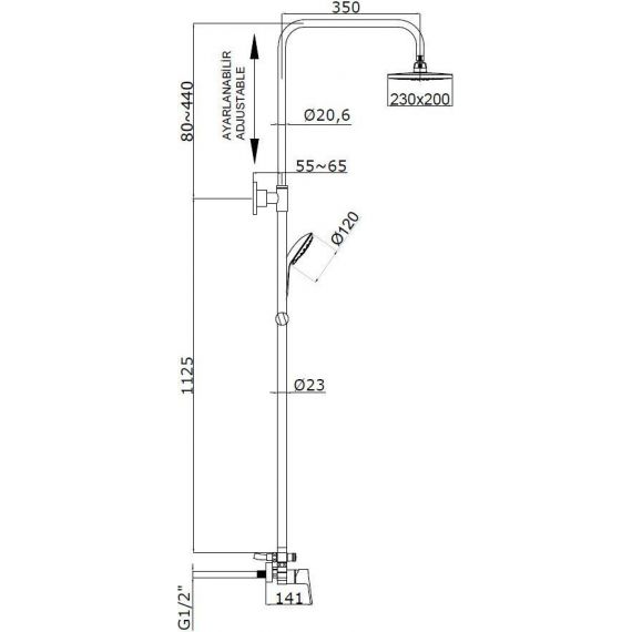 Душевая стойка Azario Treya AZ-15780121, материал - латунь, цвет - хром.
