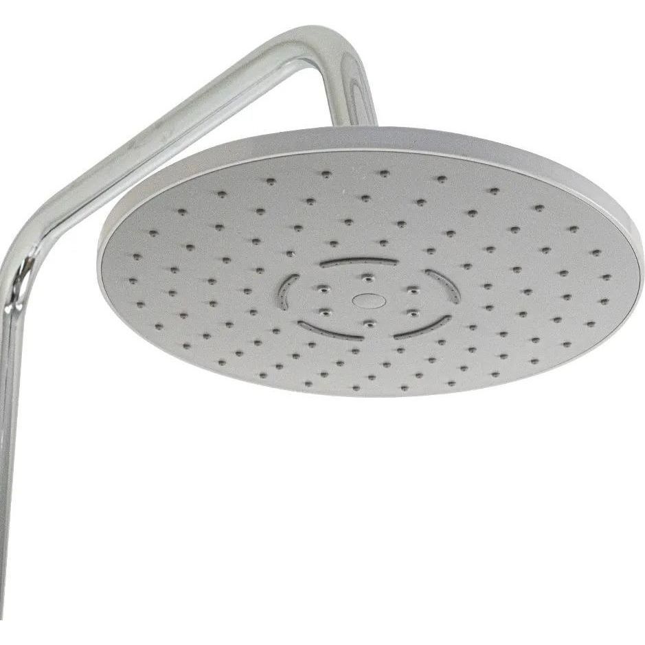 Смеситель + стойка душевая телескопическая "тропический душ" с двумя лейками в ванную / душевую комнату, хромированные. Смеситель шаровый, пластик АБС с коротким поворотным изливом, душевым шлангом и лейкой и дивертор переключения в трёх положениях. Картридж d = 35 мм, ручка литая, аэратор для экономии воды, чашки и эксцентрики. Душевая, регулируемая по высоте стойка с присоединением к корпусу смесителя и дополнительным креплением к стене и крючками для принадлежностей и большой круглой лейкой с эффектом тропического душа. Габаритные размеры: ширина смесителя 150 мм, высота 280 мм, длина излива корпуса 100 мм, высота телескопической стойки 820 - 1120 мм, длина излива стойки 330 мм, круглая двухрежимная душевая лейка d = 220 мм, круглая лейка тропический душ d = 110 мм, шланг 150 см. Вес - 3,100 кг, объём - 0,02900 м3. В комплекте корпус с изливом, чашки, эксцентрики, прокладки, стойка, дивертор, шланг, две лейки, крепления