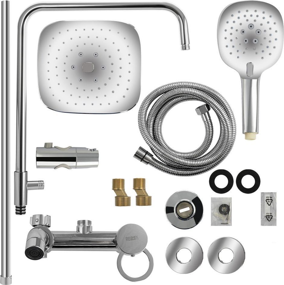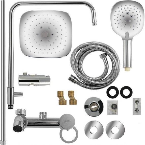 Смеситель + стойка душевая "тропический душ" с двумя лейками в ванную, хромированные. В дизайне душевой стойки гармонично соединились строгие линии и мягкие переходы. Она отлично впишется в интерьер ванной комнаты в минималистическом стиле. Глянцевое хромированное покрытие не стирается и сохраняет первозданный внешний вид в течение всего периода эксплуатации. Длительную работу без протечек обеспечивает смеситель с керамическим картриджем. Предусмотрен излив для наполнения ванны. Угол наклона верхнего душа можно регулировать в соответствии с потребностями каждого пользователя. Ручная лейка оснащена металлическим шлангом, который не перекручивается во время водных процедур. Смеситель шаровый с коротким изливом, душевым шлангом и лейкой и дивертор переключения в трёх положениях. Картридж d = 35 мм, ручка с кольцом, аэратор для экономии воды, чашки и эксцентрики. Душевая стойка с присоединением к корпусу смесителя и дополнительным креплением к стене и большой квадратной лейкой с эффектом тропического душа. Габаритные размеры: ширина смесителя 150 мм, высота 100 мм, длина излива корпуса 150 мм, высота телескопической стойки 1100 мм, длина излива стойки 330 мм, квадратная двухрежимная душевая лейка 120х120 мм, квадратная лейка тропический душ 250х240 мм, шланг 150 см. Вес - 3,500 кг, объём - 0,02528 м3. В комплекте корпус с изливом, чашки, эксцентрики, прокладки, стойка, дивертор, шланг, две лейки, крепления.