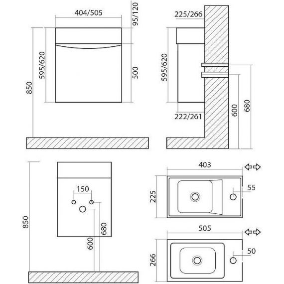 Верхний душ - 225 мм;