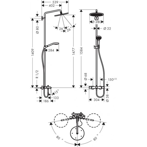 Душевая стойка Hansgrohe Croma Select S Showerpipe 280 1jet 26792000