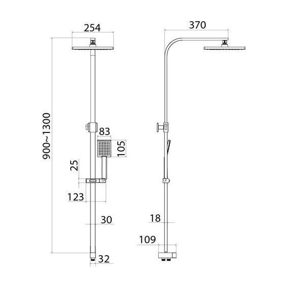 Регулируемая высота стойки (от 900 до 1300 мм) позволяет принимать душ с комфортом даже самым высоким.