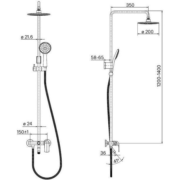 штанга для душа - нержавеющая сталь с возможностью регулировки по высоте