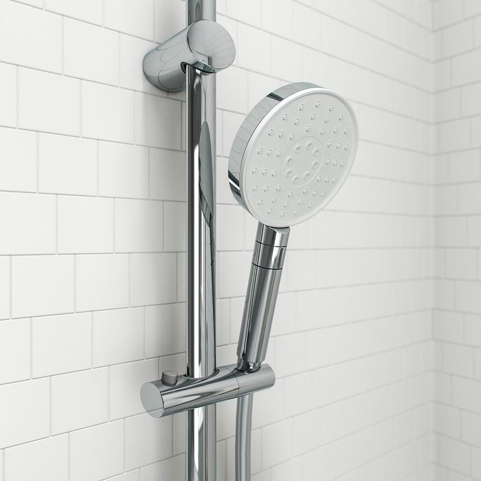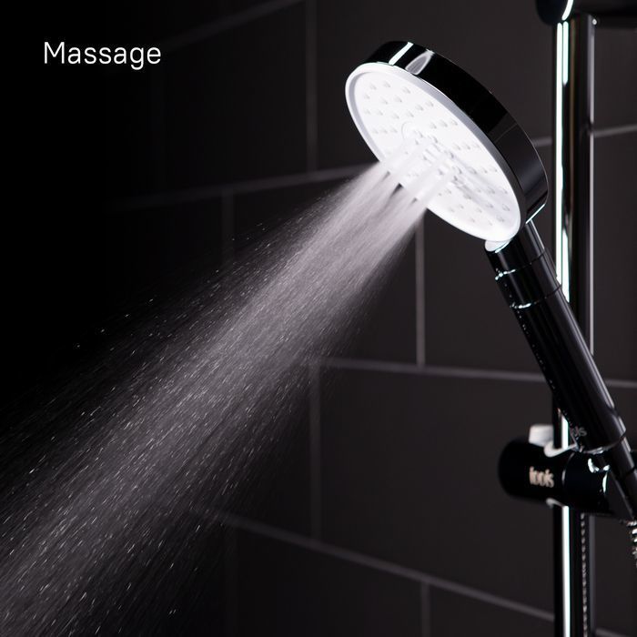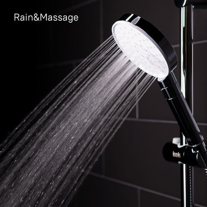 Ручная лейка из ABS-пластика, диаметр 120 мм, хром/белый матовый, 3 режима (Rain, Massage, Rain&Massage), переключение на ручке с помощью слайдера