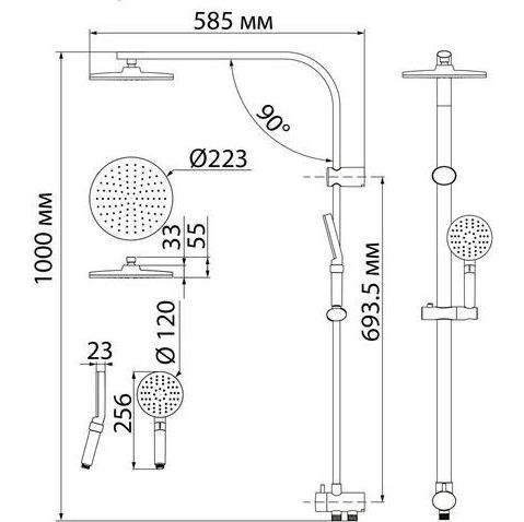 Верхняя лейка из ABS-пластика, диаметр 225 мм, хром/белый матовый