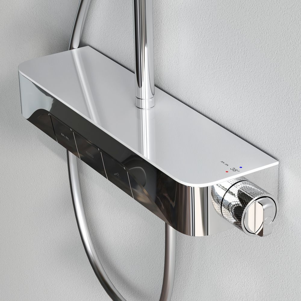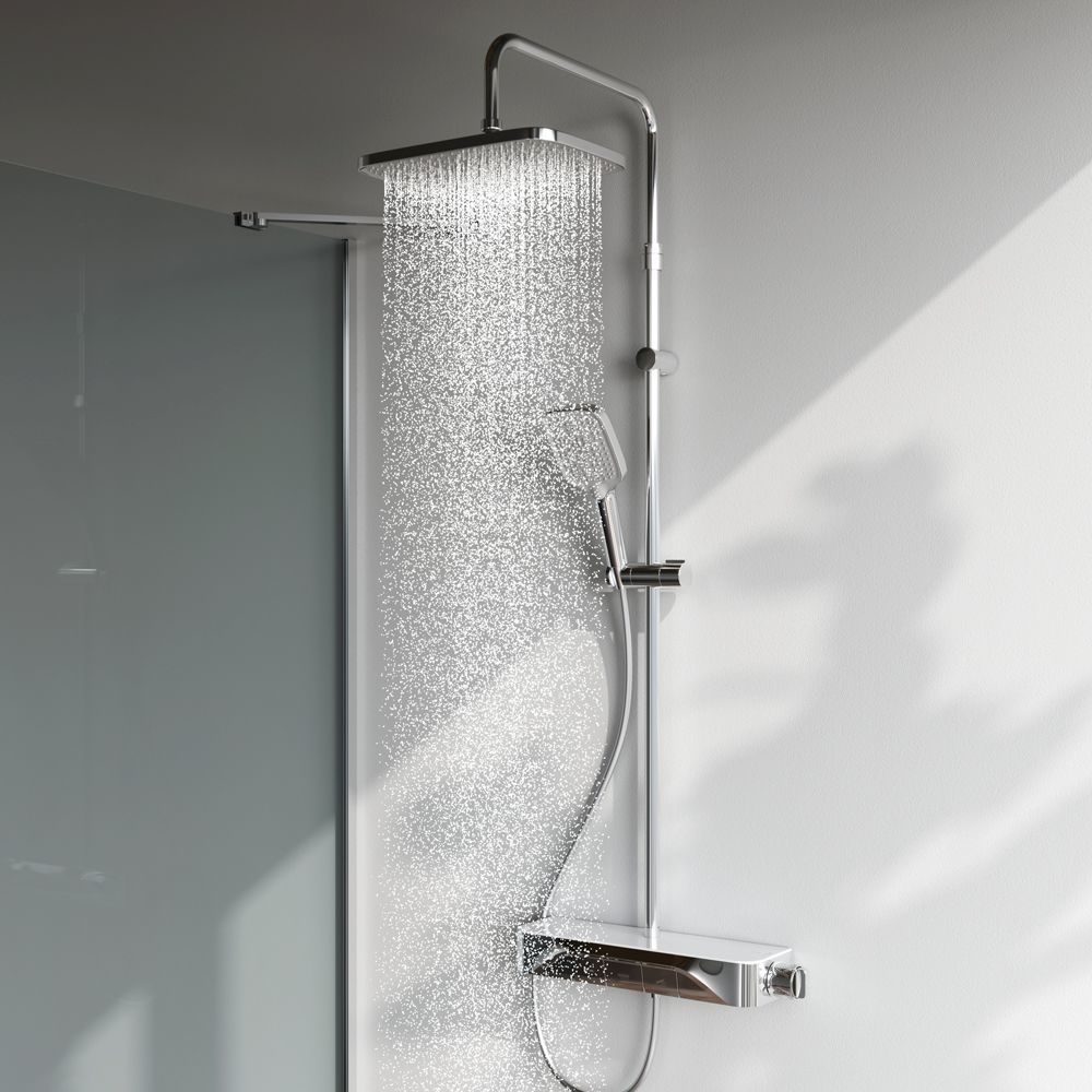 Интуитивно понятное управление: всего одна удобная ручка для настройки температуры и потока воды. Благодаря специально спроектированной эргономичной ручке вы можете управлять душевой системой даже с мыльными руками. Переключение потоков воды осуществляется нажатием клавиши.