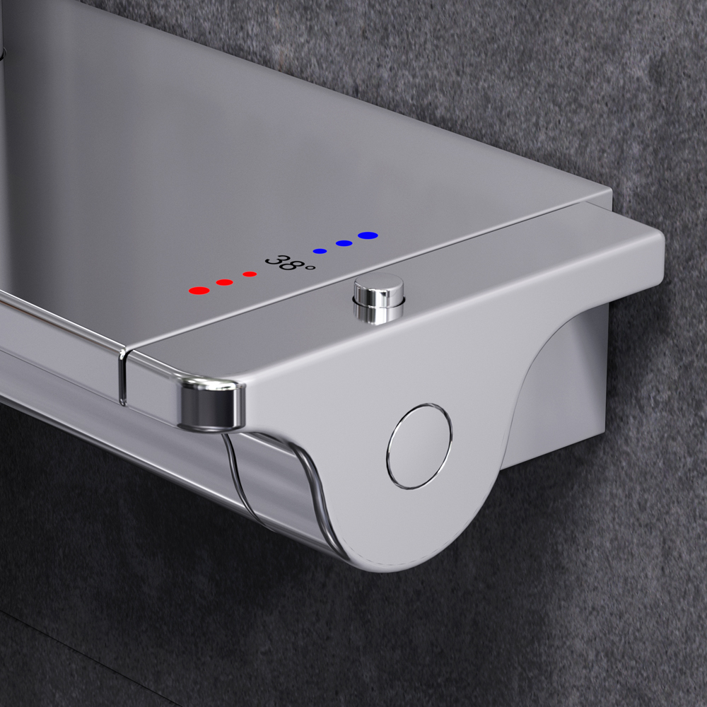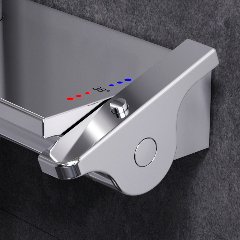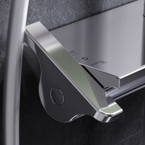 Экстраординарный дизайн: современный минималистичный стиль и экстра-функциональность. Смеситель для душа с термостатом: настенная установка картридж с термоэлементом стопор безопасности на 38C запирающий и переключающий вентиль выход для душа 1/2 встроенные обратные клапаны встроенные фильтры эксцентрики подключение G 1/2. 3 режима ручного душа: Spray EnerJet Spray + Massage переключатель режимов Simple Switch Push функция Rub& Clean для легкой очистки душевых форсунок. Регулируемый в трех плоскостях держатель для ручного душа шаровый шарнир в держателе верхнего душа позволяет регулировать угол наклона шарнирное соединение защищает душевой шланг от перекручивания.