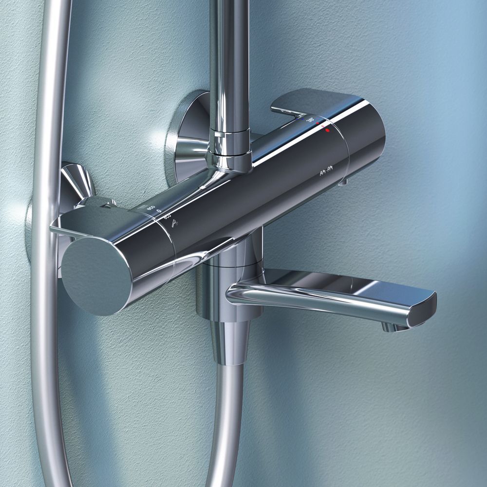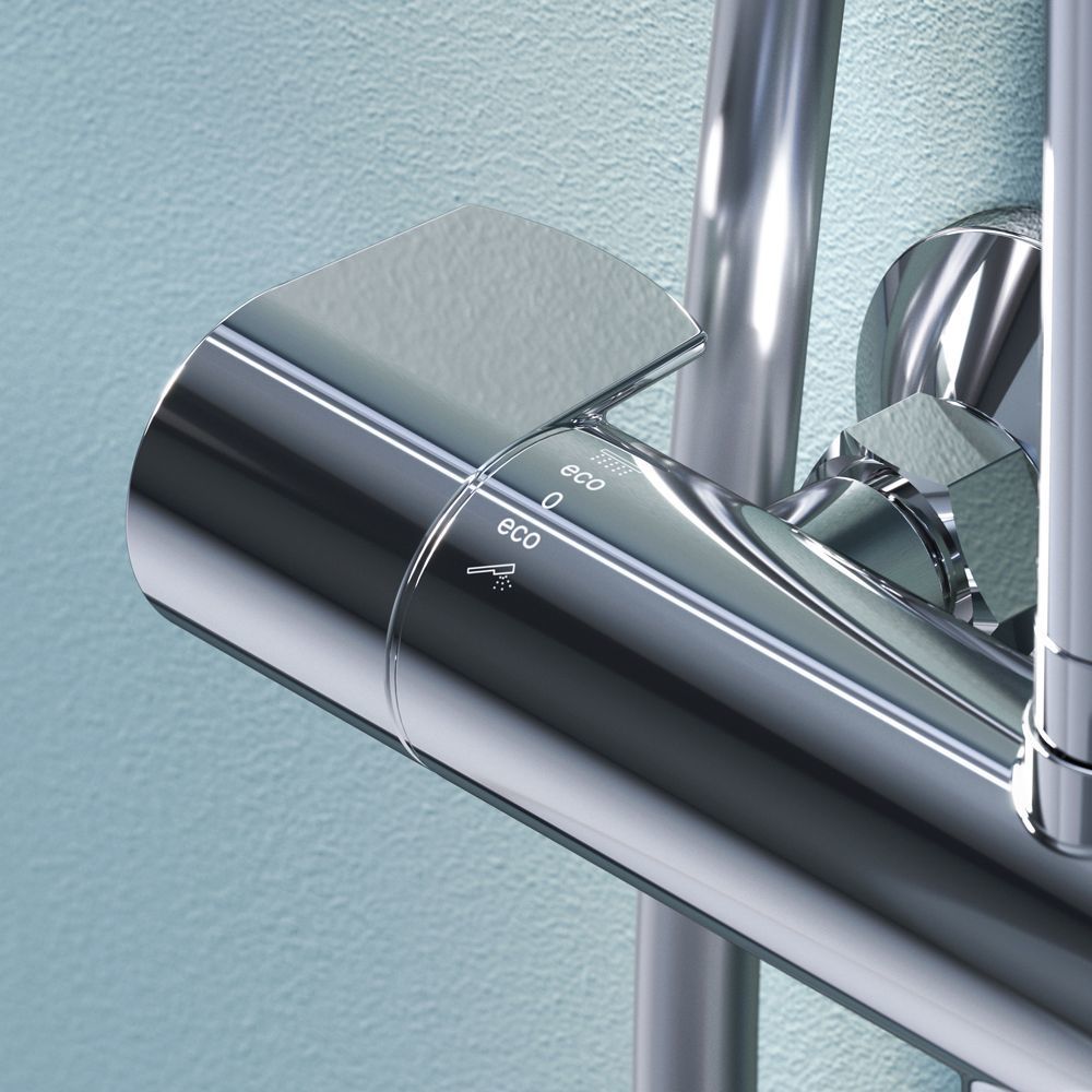 Благодаря специально спроектированной эргономичной ручке вы можете управлять душевой системой даже с мыльными руками. Термостатический картридж с высокочувствительным термоэлементом и быстрой реакцией на изменения температуры или давления надежно защищает от ожога даже при внезапном отключении холодной воды.