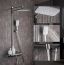 Душевая стойка позволяет поддерживать заданную комфортную температуру и направлять на один из трех распылителей воды. Это большая лейка закрепленная на стационарной штанге, средняя лейка с шлангом либо небольшой распылитель на корпусе душевой штанги.