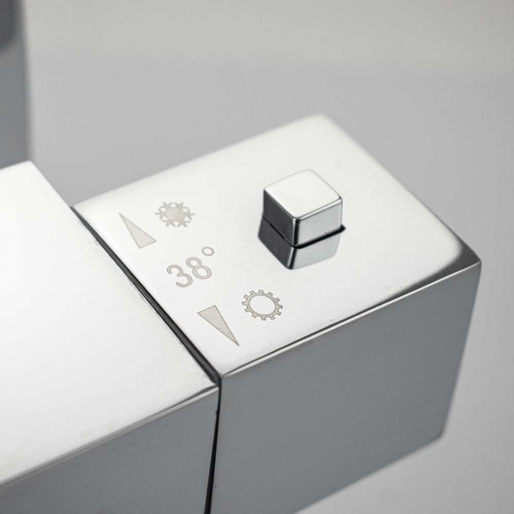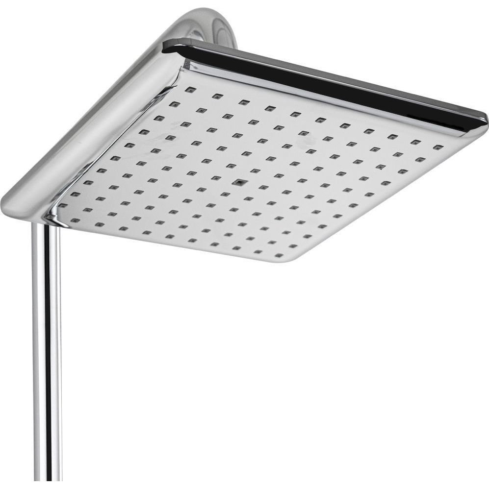 Смеситель с термостатом + стойка душевая телескопическая "тропический душ" – надежное сантехническое оборудование. Латунный, хромированный квадратный корпус с круглым коротким изливом, поворот которого является переключением подачи воды. Температура и напор воды устанавливаются поворотом двух удобных рукояток. Термостат поддерживает заданную температуру воды и может работать в системах низкого давления с газовыми проточными водонагревателями. Ограничитель температуры до 38 градусов спасает от возможного ожога при случайном повороте рукоятки. Встроенный аэратор формирует комфортный и приятный поток воды. Сеточка легко снимается для удаления налета. Аксессуар оснащен термостатическим картриджем с шумоподавлением и керамической кран-буксой, стойка с двумя квадратными хромированными лейками и шланг хромированный. Габаритные размеры: высота стойки 800 - 1100 мм, длина излива стойки 330 мм, лейка для душа 100 мм двухрежимная, лейка тропического душа 230*230 мм, длина гусака 170 мм, шланг 150 см. Вес - 5,0 кг, объём - 0,035 м3. В комплекте корпус, стойка, 2 лейки, шланг, паспорт и комплект прокладок.